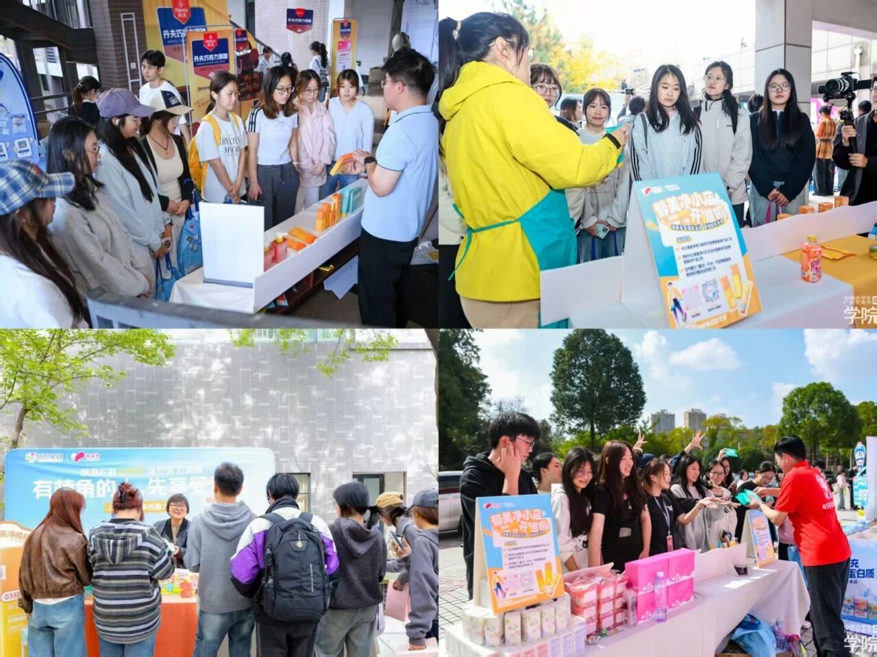 创意互动区排起长龙!6站的学子在定制贴纸墙前创意打卡,重庆交通大学现场变身“棱角青春打卡区”,同学们在展位前激情洋溢的喊出他们的青春宣言为郁美净打call;东北师范大学的互动更是人潮不断,在亲身感受品牌方现场讲解产品细节中读懂品牌坚守与创新的平衡智慧。