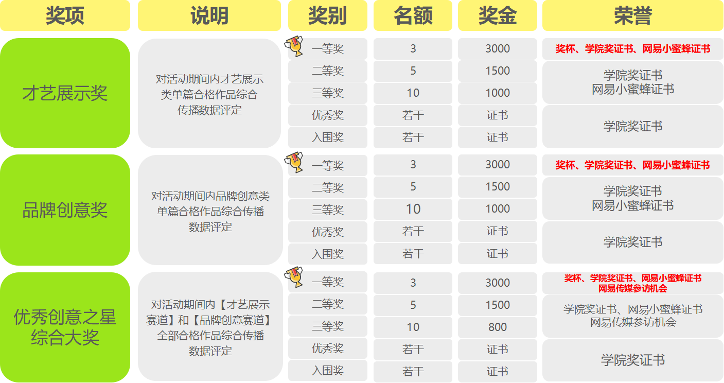3.最终奖项评定将依据网易小蜜蜂平台官方后台统计数据,包括点赞量、评论量以及收藏累量等核心互动数据;