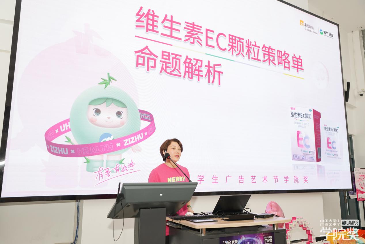 作为“毓婷”品牌旗下的新生力量,毓美丽维生素EC颗粒延续了对女性健康的守护。毓美丽命题讲解代表袁艺菡女士为学子们介绍了产品的核心优势以及命题方向,激发他们的创作灵感与热情。