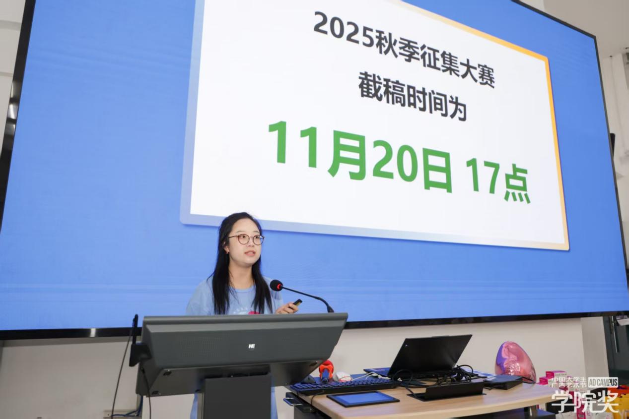 为了让学生们更加深刻地本赛季赛程、命题信息,找到创意新思路,学院奖组委会代表郎晓岑女士针对本届学院奖的赛事简介与参赛方法进行了一系列梳理,详细解读了2025学院奖秋季征集大赛的赛制亮点与核心方向,再到过往优秀作品的创意剖析,层层递进,为现场的同学们分享了大量实用参赛策略。为广大学子搭建清晰的参赛框架,对赛事有了更进一步的认识。