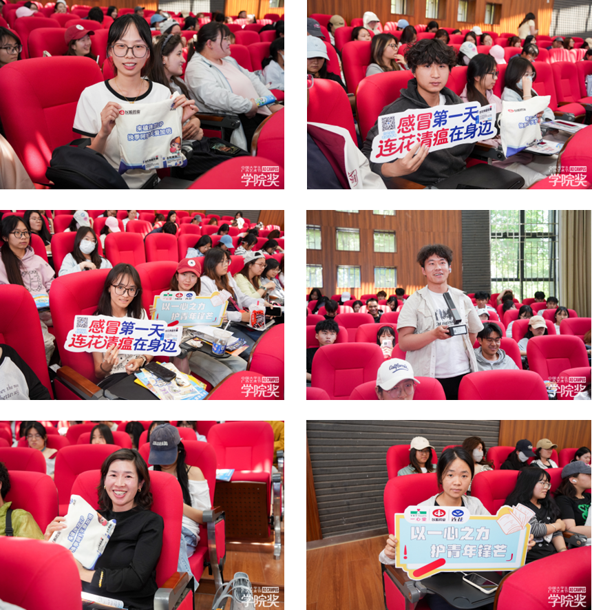 连花清瘟主题互动区也吸引了不少同学驻足。大家轮流举起“感冒第一天,连花清瘟在身边”的手举牌,在背景板前定格下自己的春日影像。拍完照,不少人将照片分享到自己的社交媒体上,很快,朋友圈里便多了几抹连花清瘟的蓝色。一次又一次自然而然的健康传递被留存,而那些被递到手中的小礼物,更像是对这份参与的温柔回应。