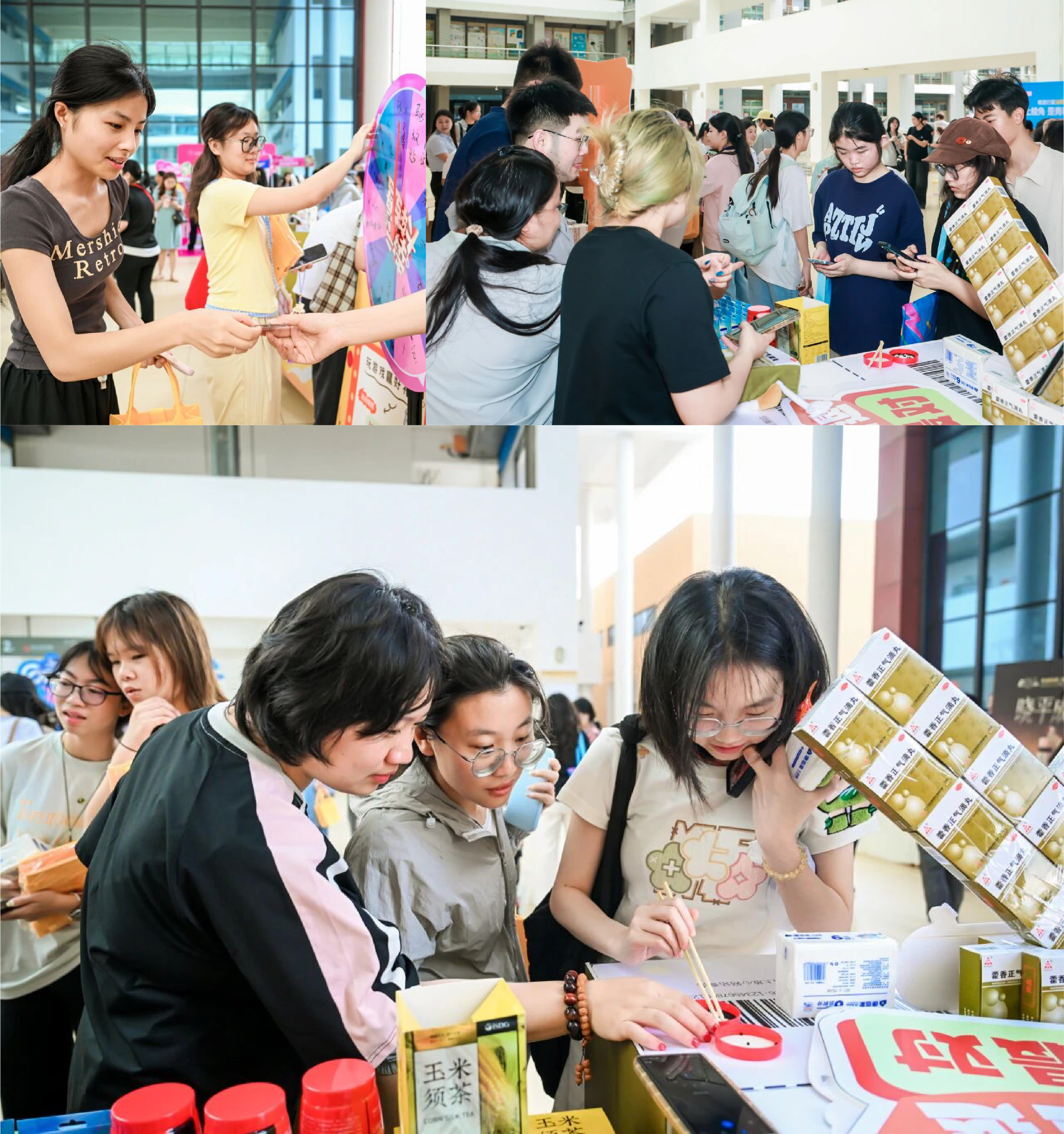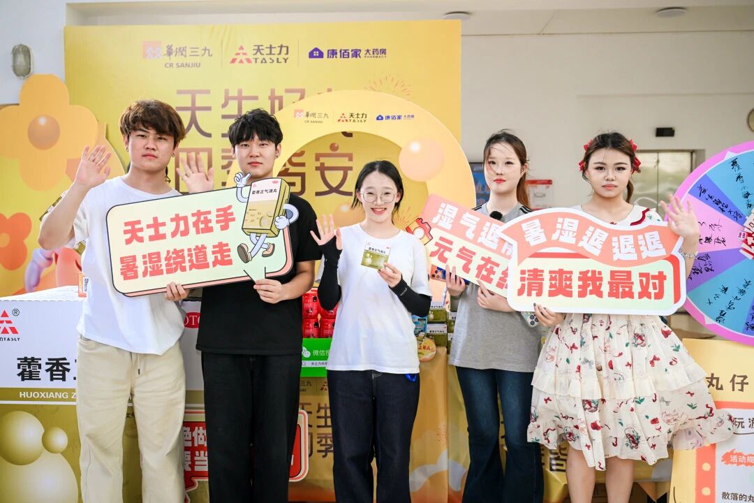 “原来滴丸这么小一颗,夹起来好滑!”成功完成的同学不仅收获了品牌定制的健康小礼品,更在欢声笑语中直观感受到了滴丸剂型“小巧便携、固体易服”的独特优势。此外,现场还设置了“藿香小丸子”IP合影打卡区,同学们手持“天生好丸,四季皆安”等创意手举牌拍照分享,朋友圈、小红书瞬间被刷屏。海王星辰康佰家的健康顾问也在现场为同学们提供夏季防暑祛湿知识科普,让健康守护从互动走向生活。