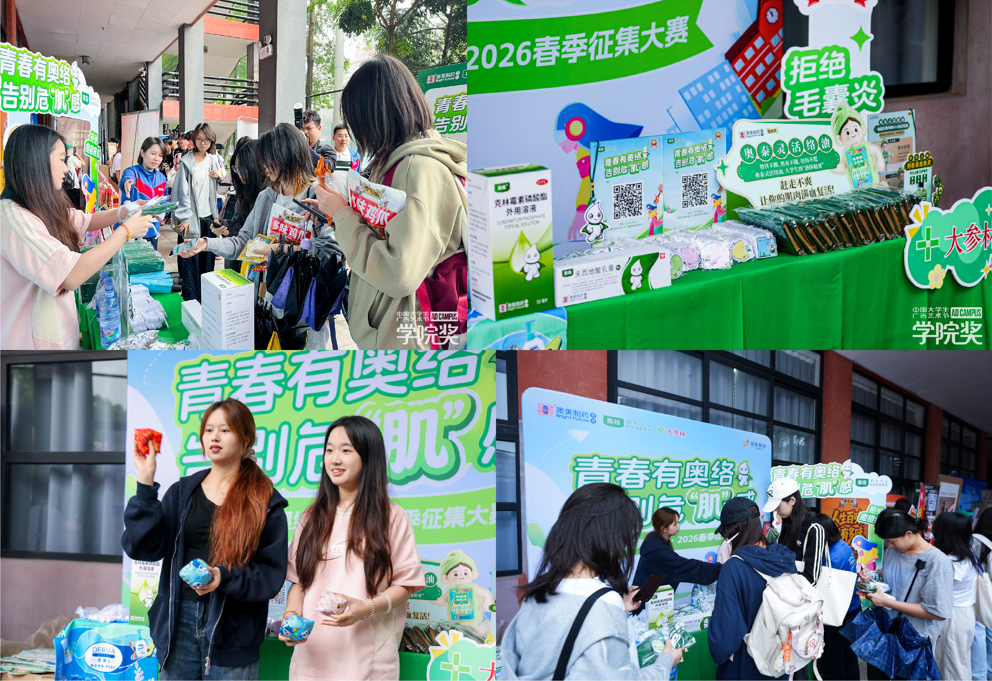 宣讲现场思潮涌动,场外同样热力不减。品牌互动体验区热气爆棚,高颜值布置与艺术氛围相融,吸引大批学子驻足参与、沉浸式体验。在趣味互动与产品体验中,同学们亲手感受奥络产品的亲肤质地与便携设计,更深刻感知了它“抗菌护肤”的品牌实力。品牌还携手连锁药店大参林同步进校园,让专业护肤知识真正走进青年群体,也让奥络的专业守护更接地气、更有温度。