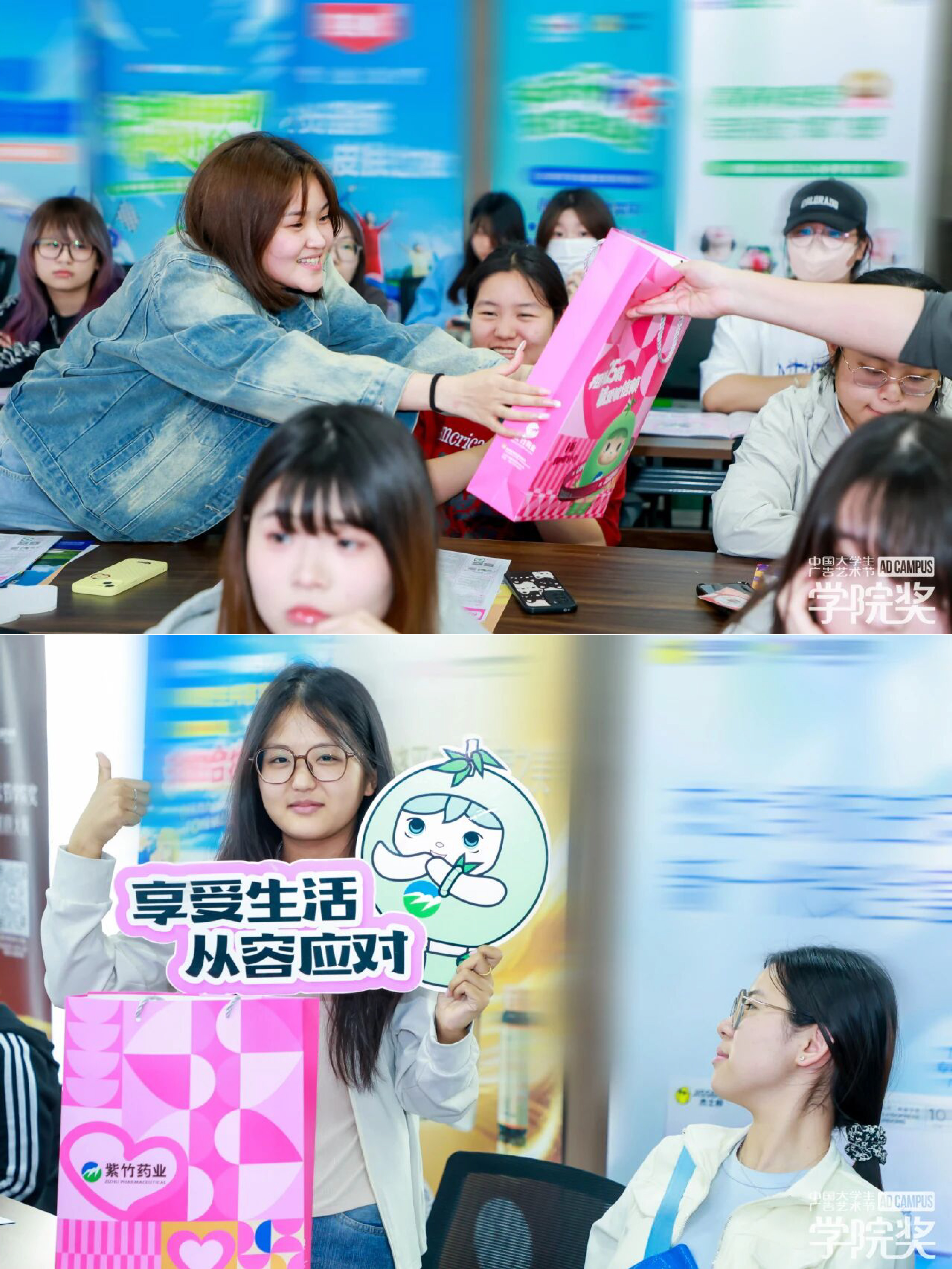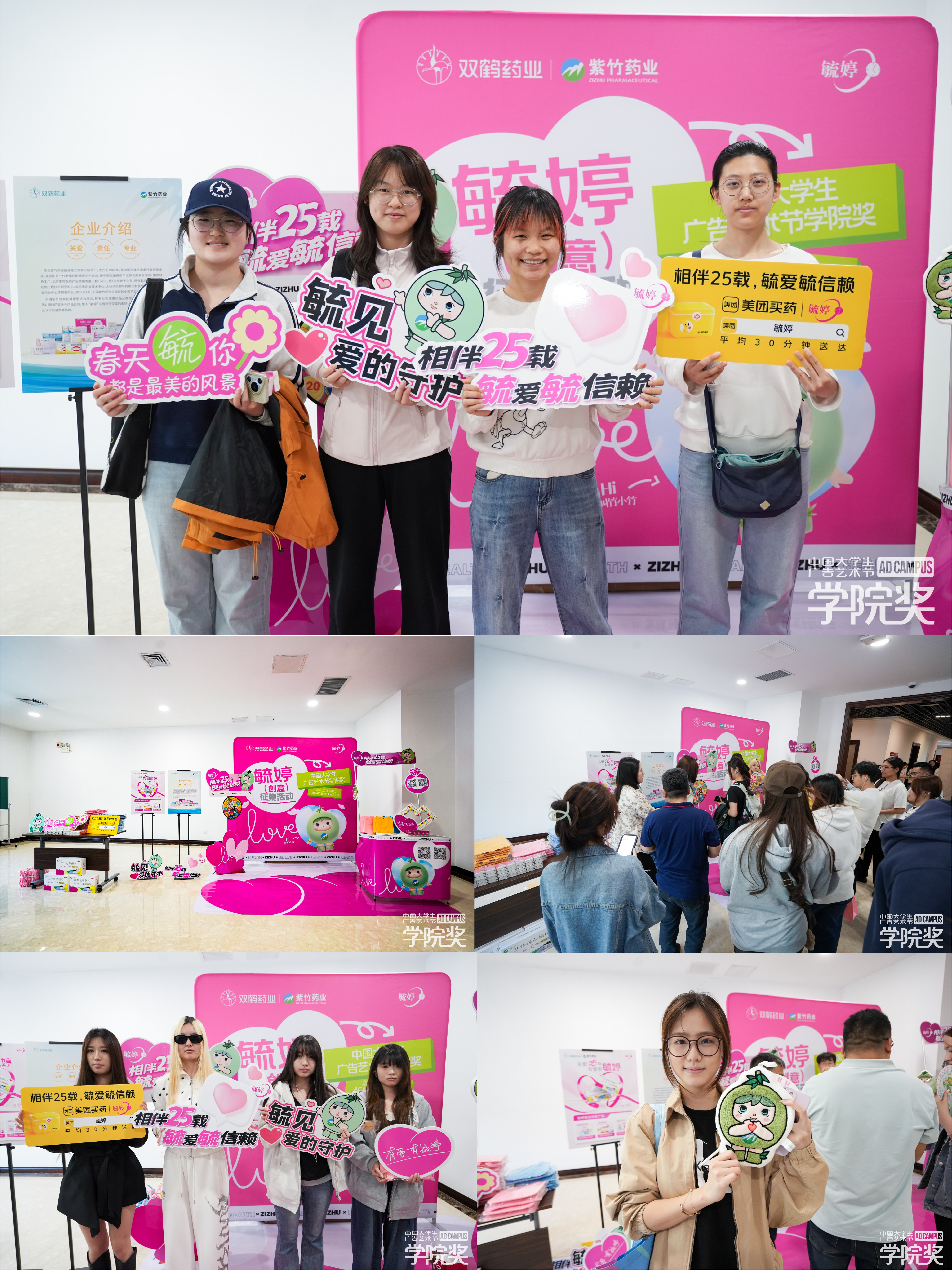 课堂之外,毓婷互动展区凭借极具辨识度的视觉设计,吸引了众多学生驻足流连。品牌专属IP“竹小竹”更成为手机镜头里争相捕捉的焦点。趣味横生的互动游戏将现场热度再度推高,同学们在轻松闯关中拉近与品牌的距离,欢声笑语此起彼伏。这里不再是单向的品牌展示,而是双向的情感交汇地。学子们在自主参与中建立品牌认知,在沉浸体验中感知品牌温度。一抹毓婷粉点亮南开校园一角,一份信赖悄然种进年轻心田。